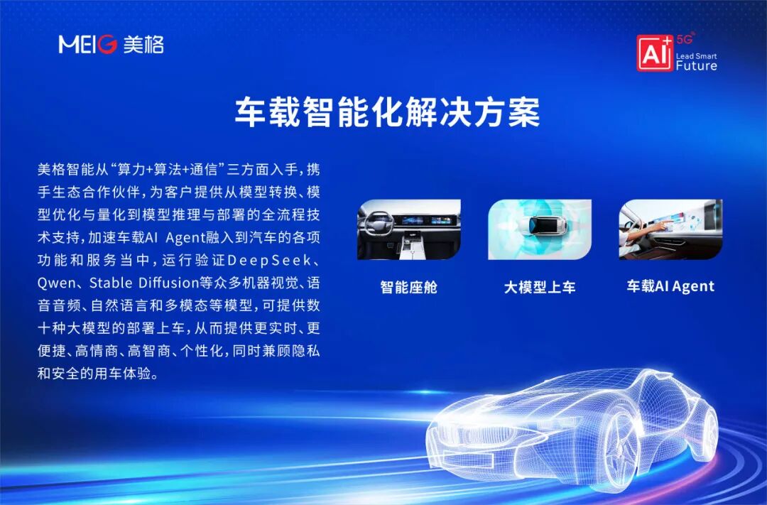 在加速车载智能化方面,美格智能从“算力+算法+通信”三方面入手,携手生态合作伙伴,为客户提供从模型转换、模型优化与量化到模型推理与部署的全流程技术支持,加速车载AI Agent融入到汽车的各项功能和服务当中。