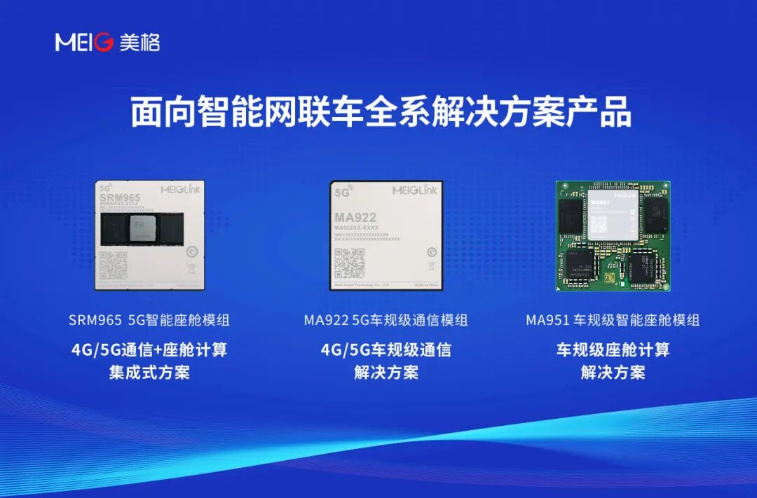 美格智能在车载产品开发方面持续投入,具备完善的模组、解决方案矩阵和大规模量产应用经验,包含SLM550、SLM925、SRM935、SRM961、SRM965等车载座舱模组;MA710A、MA922、MA800、MA800A等T-BOX模组;MA174、MA188等车载蓝牙/Wi-Fi模组产品。产品功能涵盖智能网联车所必备的4G/5G、V2X、RedCap、Wi-Fi 5/Wi-Fi 6/Wi-Fi 7、GNSS、Auto Grade等多种通信和应用功能,丰富的模组产品矩阵和完善的产业体系,能够全面满足客户在不同应用场景下的模组选型需求。