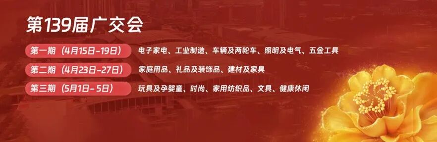 2026第139届中国进出口商品交易会(广交会)展会分三期线下举办,具体展期为第一期4月15-19日、第二期4月23-27日、第三期5月1-5日(分三期,每期5天)展览总面积约155万平方米。本届广交会为全球采购商提供品类齐全、物美价优、便捷高效、信誉保障的一站式贸易平台,主要特点与亮点包括:一是题材结构优。二是展商质量高。三是创新产品多。四是配套活动丰富多彩。五是参会便利持续提升