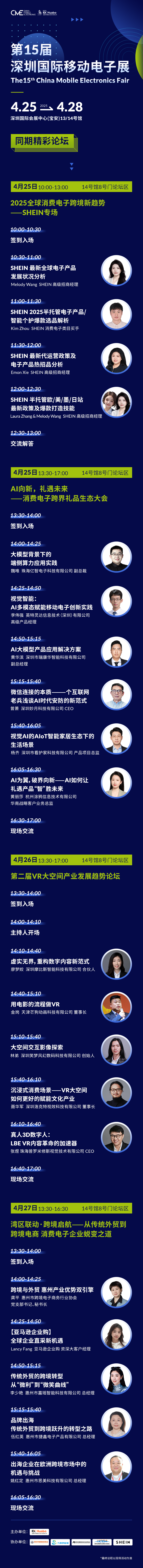 光看展览哪够过瘾,高质量论坛让你不虚此行!CME同期4场论坛聚焦跨境电子、VR大空间、3C数码、智能家居、智能穿戴、智能个护、智慧安防等热门方向,打造高质量行业论坛,业界领军人物、专家学者、电商大咖和精英企业代表等行业大咖齐聚一堂,带你深入探索消费电子行业的新趋势,开启一场科技与智慧的深度之旅。