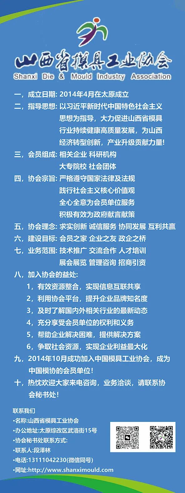 中国(山西)智能制造装备博览会于2025年9月19 -21日在太原晋阳湖国际会展中心举办,山西模协作为协办单位敬请各会员单位及相关企业勇跃参展参会,详情请联系模协秘书处!段泽林13111042230(微信同号)!