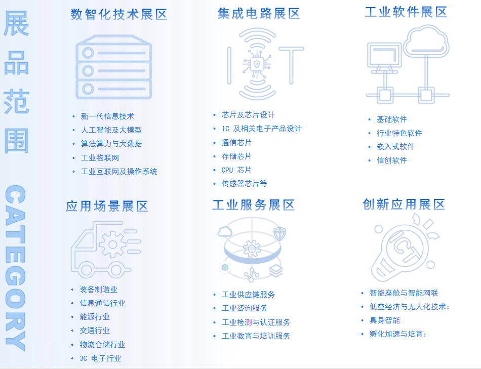 这些展品范围展示了新一代信息技术与应用展览会的全面性和前沿性,涵盖了从基础技术到应用场景的多个方面,旨在促进技术创新和产业升级