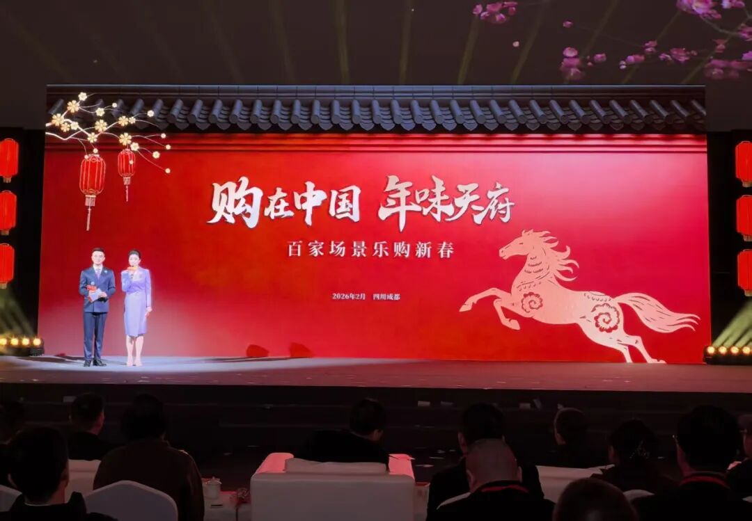 2月10日晚,华灯初上,年意正浓。在天府新区麓镇广场璀璨的灯火与蒸腾的年味中,由成都市人民政府、四川省商务厅主办,成都市商务局、四川天府新区管委会、成都市广播电视台承办的“购在中国 年味天府”百家场景乐购新春活动举行