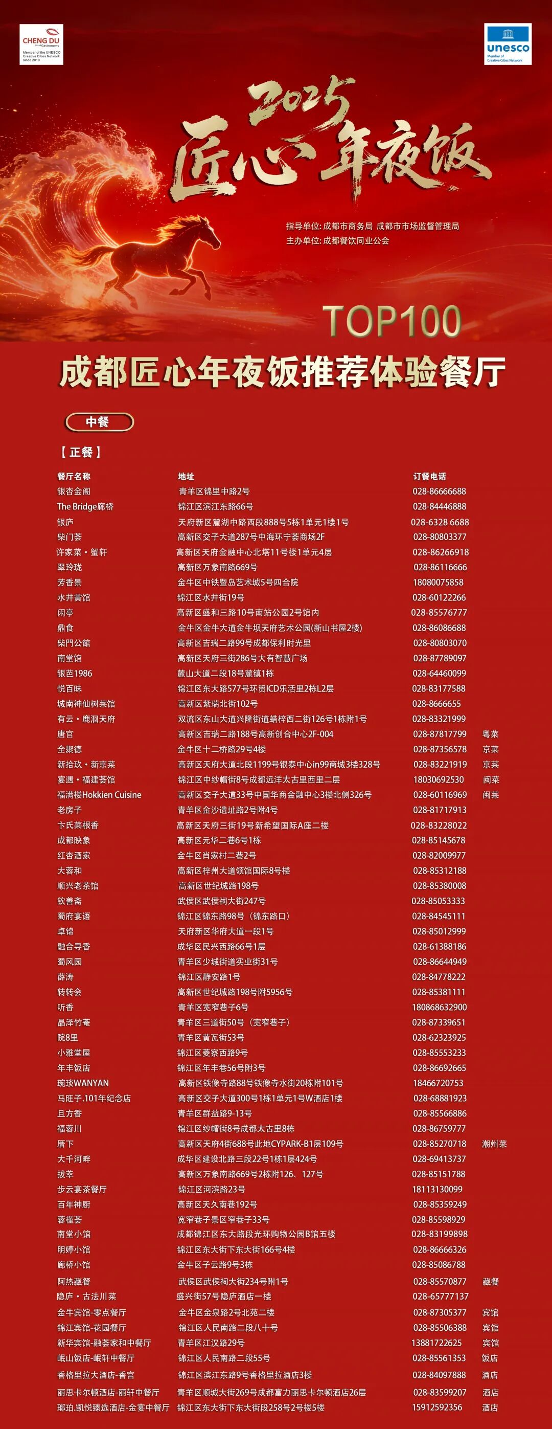 作为当晚流程“菜单”上的主菜之一——“美食之都团圆宴活动清单”与“2025成都匠心年夜饭”推荐榜单发布,带领市民与游客走进成都的烟火深处,探寻那些街巷的传统老字号与引领潮流的新派餐厅,让大家共度一个有滋有味的新春佳节。