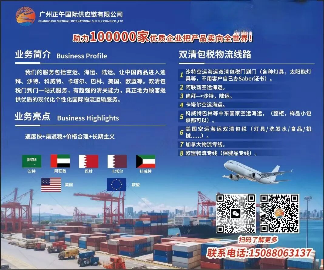 我们在这里,随时准备为你提供专业的国际物流支持,让你的跨境贸易之路走得更顺畅、更安心。一起抓住广交会的商机,把生意做到中东去!