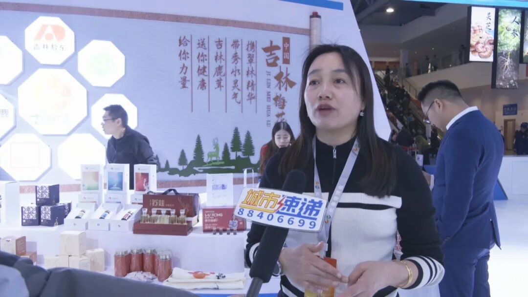 吉林省鹿业生物制品有限公司 销售经理 刘微:我们主打的产品就是鹿心丸、鹿角帽粉,是第二次参加健博会,去年有收益,去年我们主要对接那些私域、OEM(代工方式)、ODM(代工方式)贴牌的都有,今年我明显感觉咱们的客户群体年轻化了。