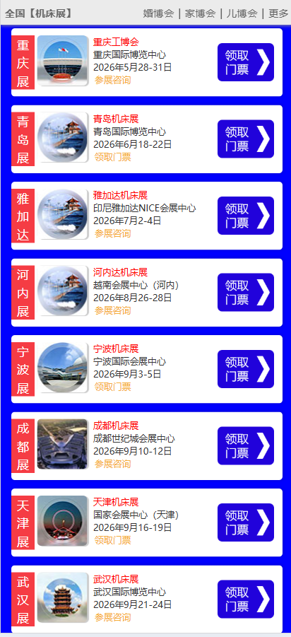 更多城市机床展时间表如下