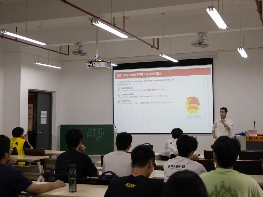 林老师强调,作为工科专业学子,同学们应当将个人学习同国家新质生产力发展、智能产业升级相结合,赓续红色精神,锤炼自身专业本领,自觉向团员标准靠拢。他同时提醒全体学子要落实后续学习任务,把理论感悟融入日常言行,以青春之力助力民族复兴征程。