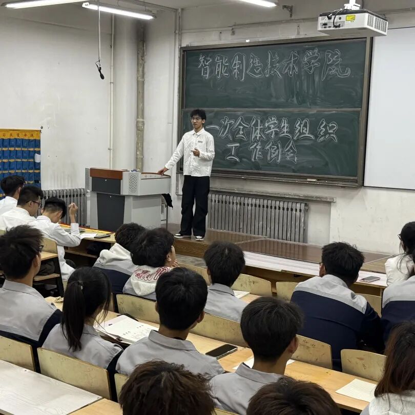 为加强学生会作风建设、研讨优化方案,同时开展各部门阶段性工作总结与汇报,推动学院学生工作高质量发展,智能制造技术学院于11月21日17:00在清华楼西J301教室顺利召开了2025级学生组织第一次全体工作例会。