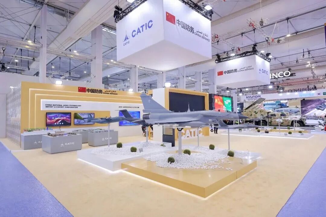 二、本届沙特防务展上,中航技代表中国航空工业集团,在主管机关的统一组织与领导下,与其他10家军贸公司共同组成“中国防务展团集体亮相,以开放的姿态展示来自“中国防务”的硬核实力。