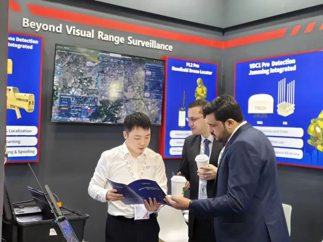 八、本届沙特防务展上,成都大公博创信息技术有限公司以“军工级安防技术守护关键基础设施”为主题,重点展示其核心安防解决方案及三款旗舰产品,吸引了来自沙特、阿联酋、卡塔尔等海湾国家防务部门及企业的关注。该方案以“全频段覆盖、全时域监控、全地域适配”为核心优势,可无缝应对低空空域无人机威胁,为机场、边境、体育场馆、能源设施等关键场景提供全天候安全防护。