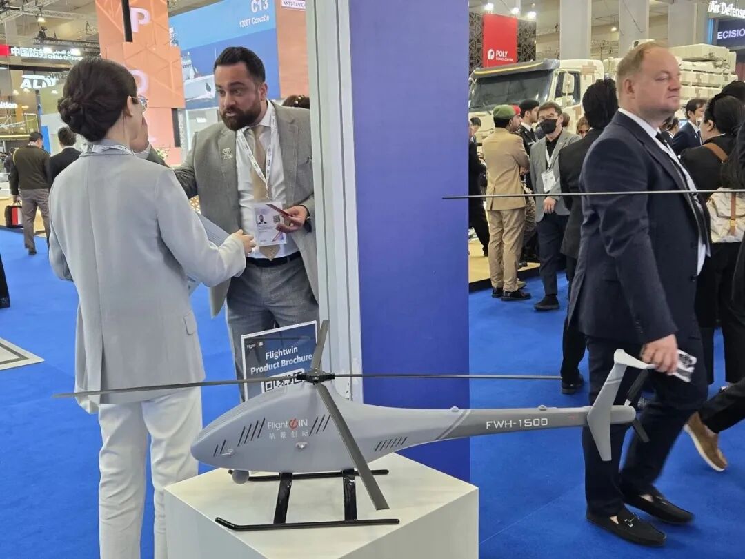 五、北京卓翼智能科技有限公司作为中国无人装备领域民营企业代表,首次参加世界防务展:展出超重载无人机ZMD200、侦察无人机MD-50MM与GZ140、复合翼无人机ZV30E与ZV150P等五款产品,构建起涵盖重载运输、分布式侦察、长航时巡检的无人机产品矩阵,此为卓翼智能首次向全球防务市场公开完整产品谱系。