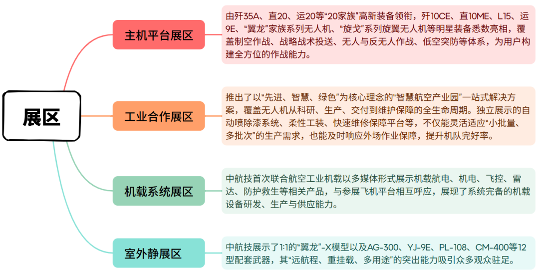 本届沙特防务展,中航技锚定中东地区典型装备应用场景、用户需求及沙特“2030远景,聚焦“体系作战”“无人作战”“能力建设”的特点,设置“主机平台”“工业合作”及“机载系统”展区,体系化展示中国航空工业的完备产品谱系与工业合作能力。