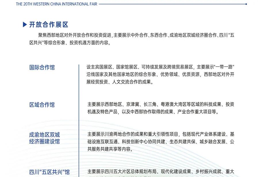 2025年5月25-29日,2025第二十届中国西部国际博览会将会在中国西部国际博览城隆重举行,展会以“深化改革增动能扩大开放促发展"为主题,预计面积超20万平方米,汇聚了3000+优质参展品牌,吸引了50000+专业观众。