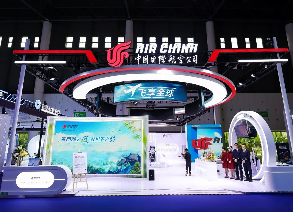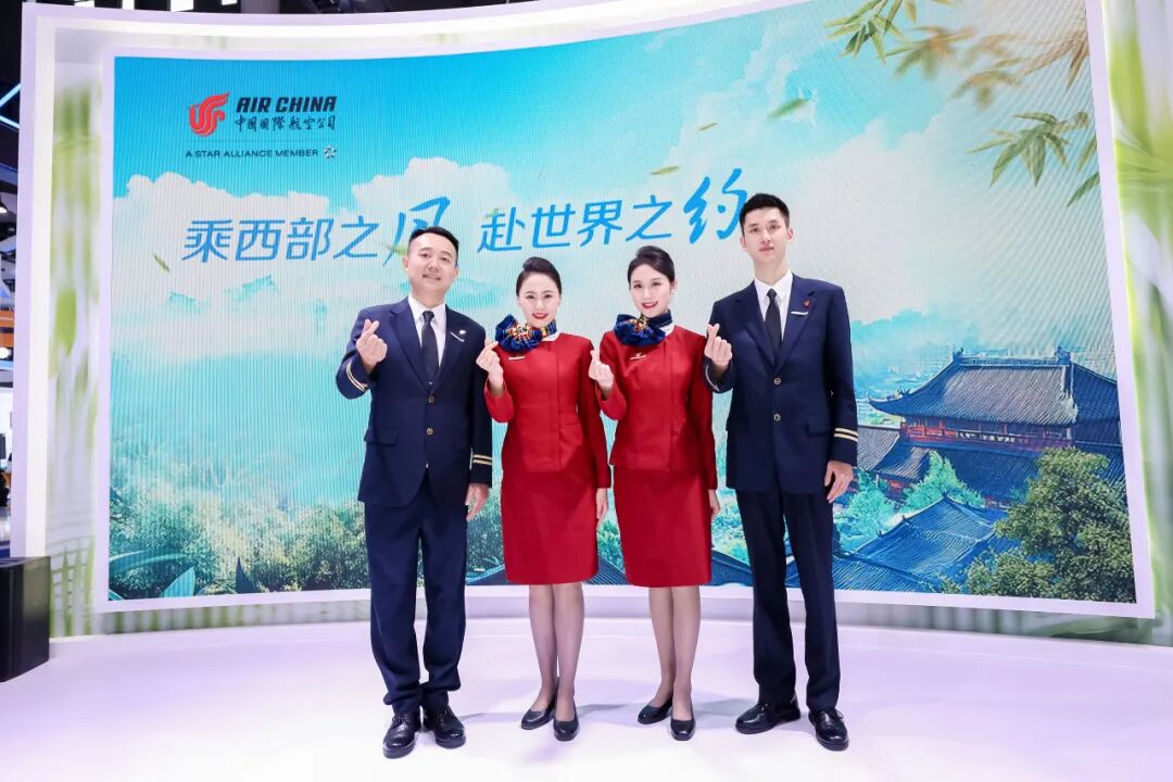 展会上,国航围绕全球航线网络拓展、“一带一路”航线开辟、成渝区域枢纽建设、高高原安全飞行4个内容板块,呈现“四重飞享”生动画面。