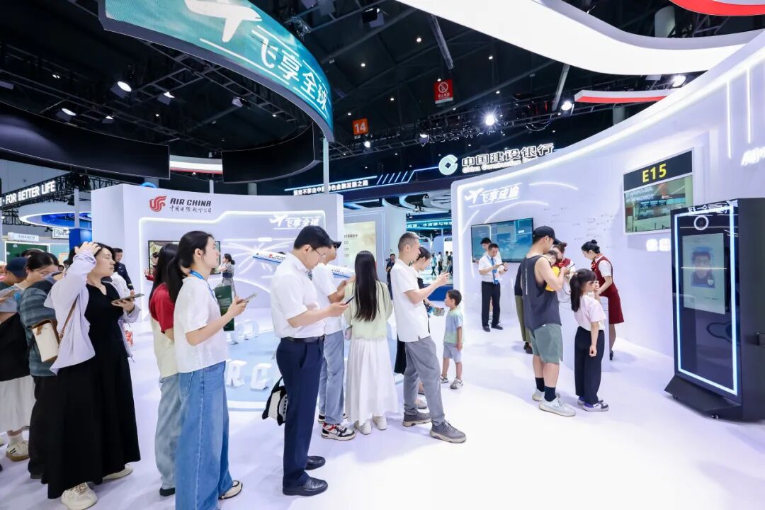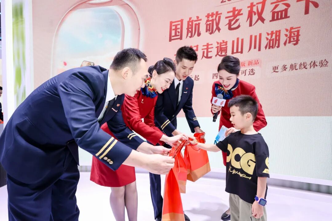 在国航展台,丰富的展示内容及飞行员科普讲座、精品餐食品鉴等活动,吸引众多观众驻足参观、互动。