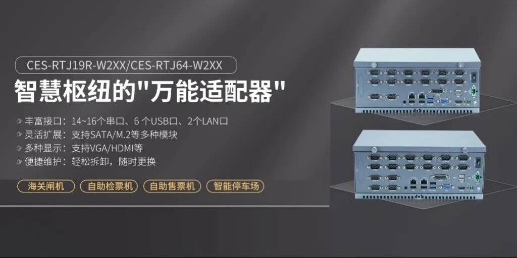 专为 AFC设计的CES-RTJ64-W2XX(点击链接查看更多)采用复合型I/O口矩阵,可支持摄像头、扫码枪等多设备同时运行;双千兆网口配合三显输出(HDMI 1.4/ VGA/ LVDS)的黄金组合,充分满足多屏交互与系统扩展需求。