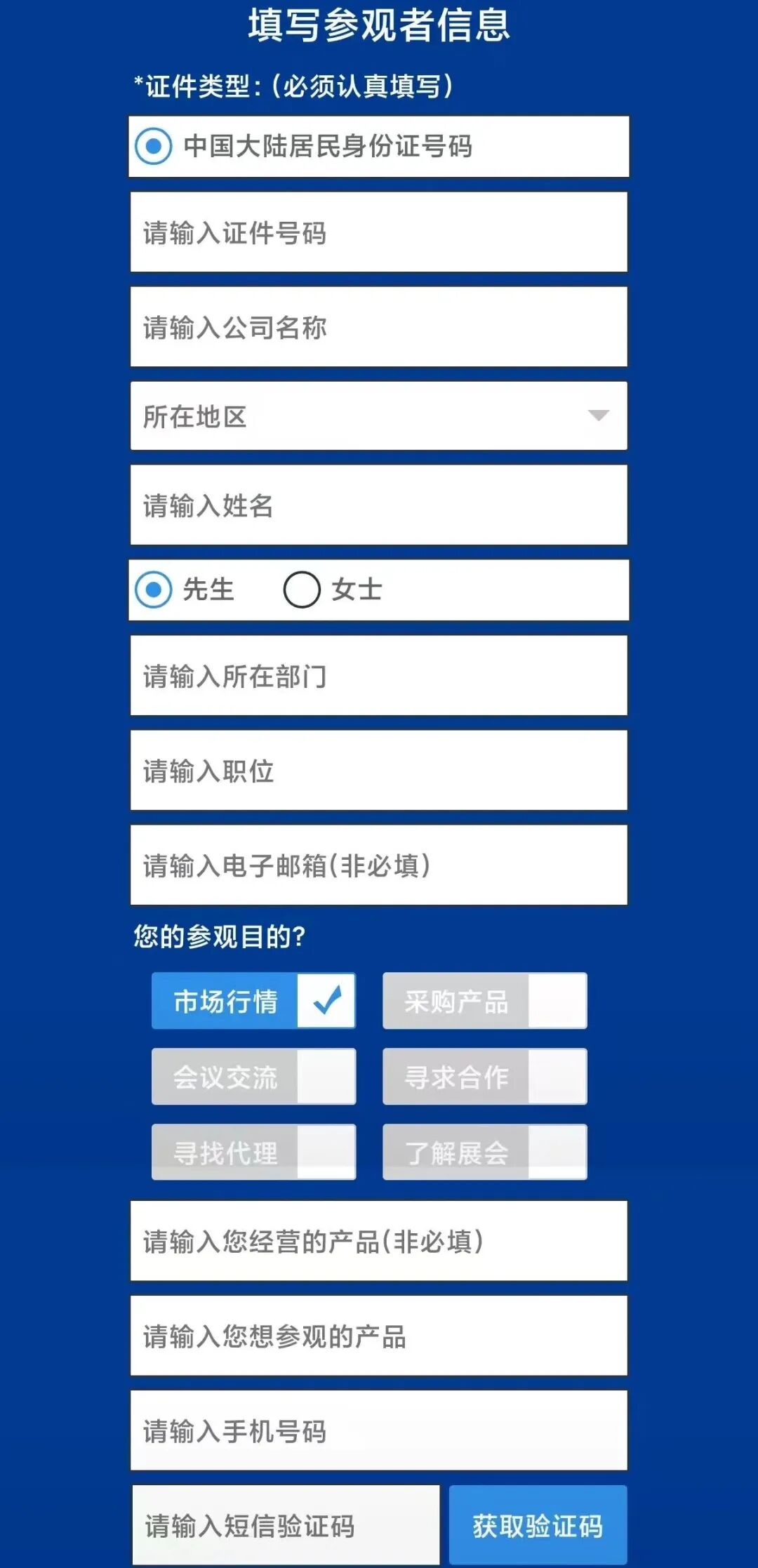 填写个人信息提交登记