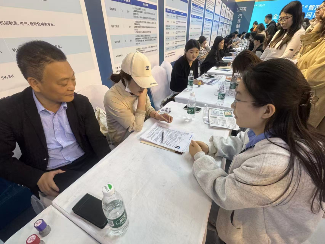 求职现场,我院毕业生精神饱满、自信从容,主动向企业投递简历,与招聘人员深入交流,充分展现了智能制造学院学子扎实的专业功底与良好的精神风貌。