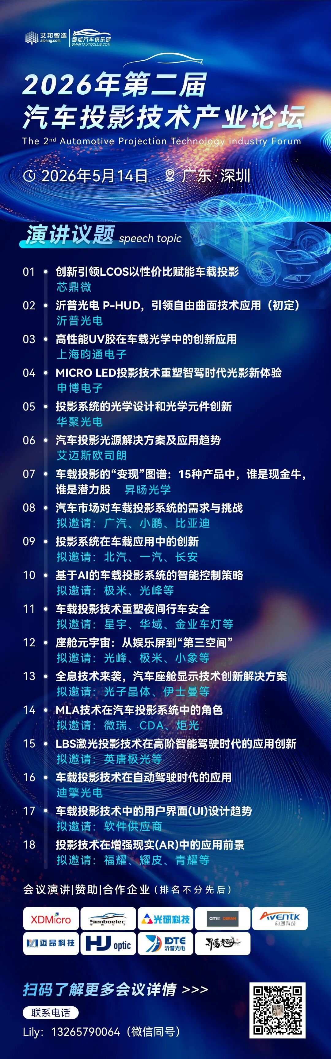 活动推荐二:第二届汽车投影技术产业论坛(5月14日 深圳)
