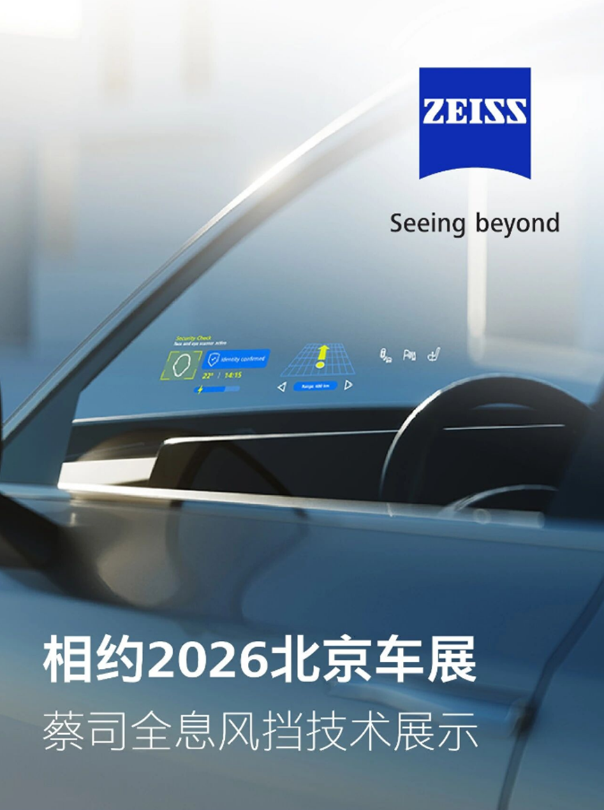 在2026北京车展期间,蔡司微光学将举办两场样机体验活动,现场呈现前沿的全息风挡显示与全息透明摄像头解决方案。