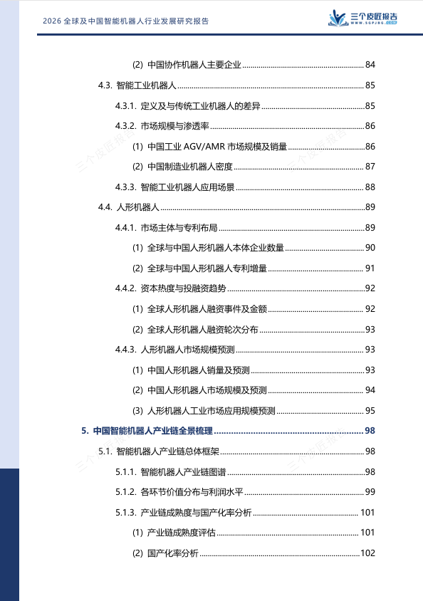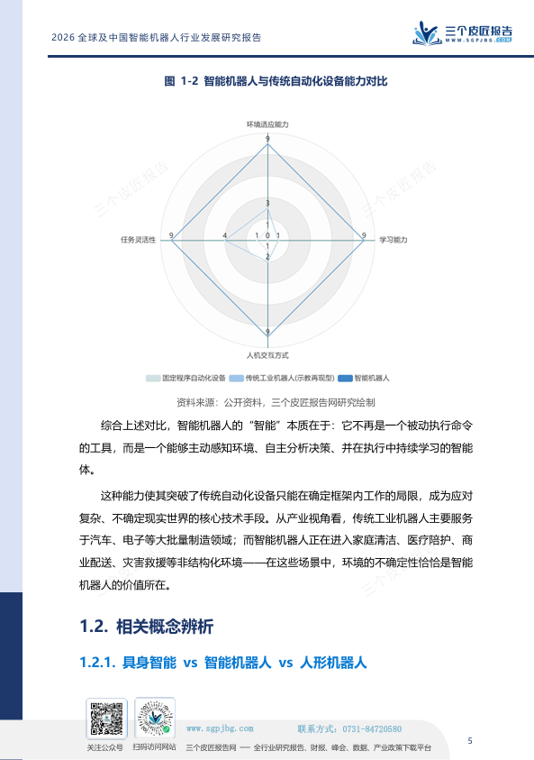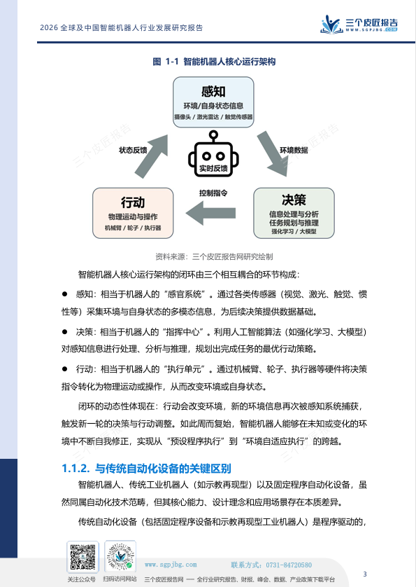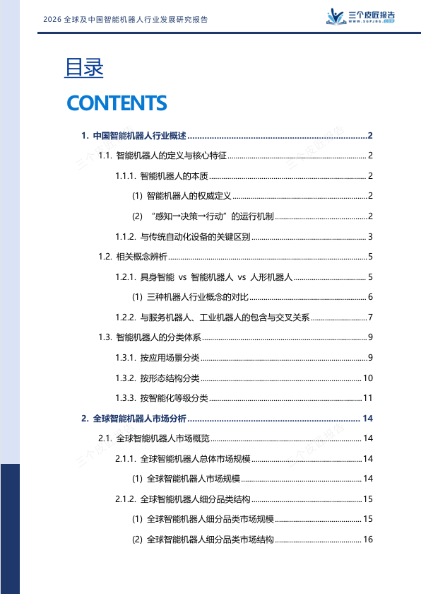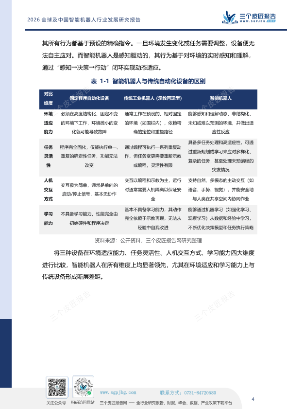 这份报告从定义、全球市场、中国格局、细分赛道、产业链、趋势机遇六个维度拆解了智能机器人产业的运行逻辑。本文将从五个层面解读这份报告的核心结论。