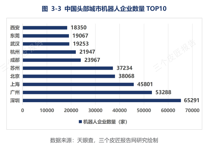 截至2024年底,中国智能机器人企业达45.17万家,较2020年增长206.73%,东部地区占比66.06%。城市竞争力方面,苏州、上海、深圳以超90分组成第一梯队北京、杭州、宁波、南京、广州、东莞、合肥构成第二梯队。