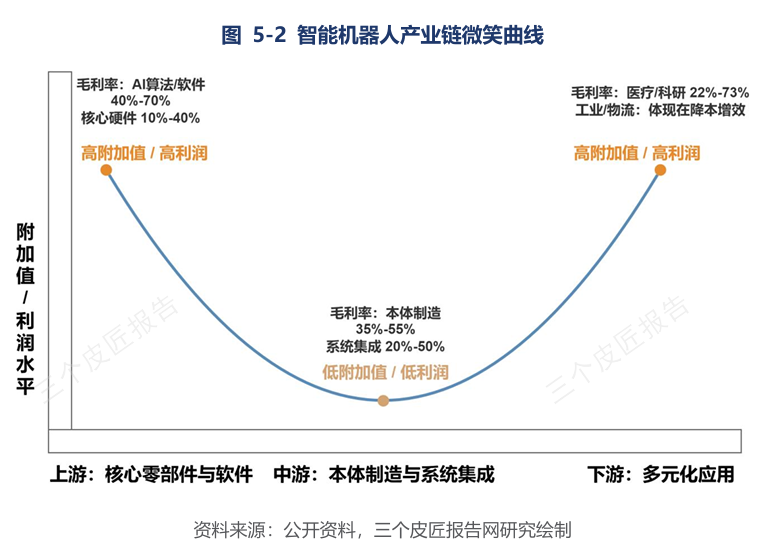 智能机器人产业链呈现典型的“微笑曲线”特征:
