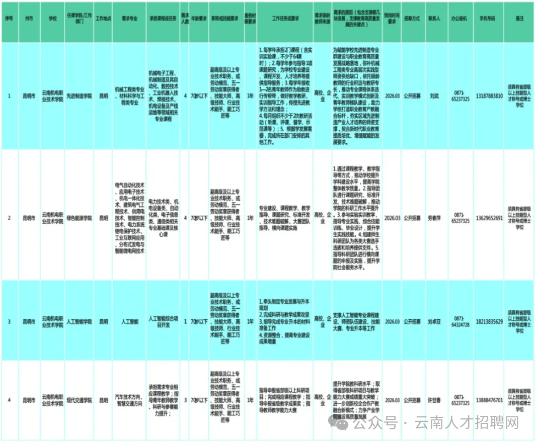 云南机电职业技术学院2026年春季“银龄计划”招募简章