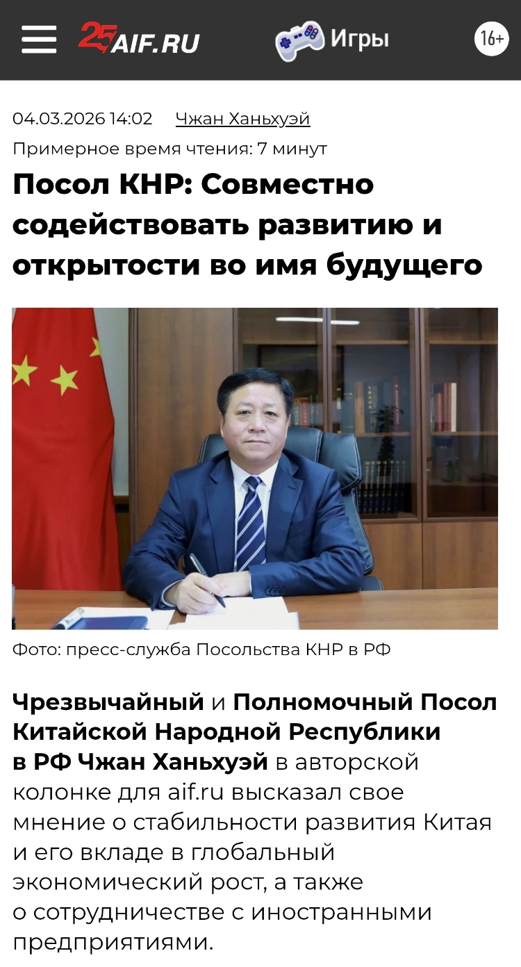 俄罗斯论据与事实报发表中国驻俄罗斯大使张汉晖署名文章《携手促发展 开放向未来》。文章称,中国始终以开放姿态拥抱世界,持续扩大进口和市场开放。中国不断优化农食产品准入,连续八年举办进博会,启动“共享大市场·出口中国”系列活动,以实际行动让更多全球商品进入中国市场。