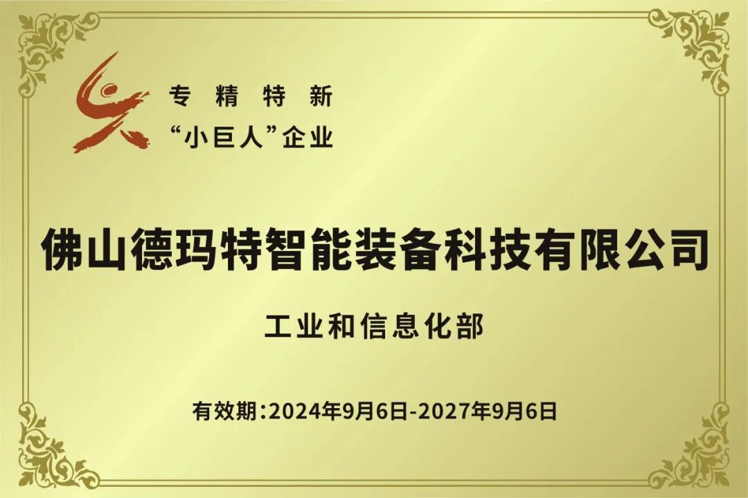 自创立之初,徳玛特智能坚持技术创新,优化行业应用的发展方向,荣获国家级专精特新 “小巨人”企业、国家级高新技术企业、佛山高新技术进步奖、守合同重信用企业等荣誉。