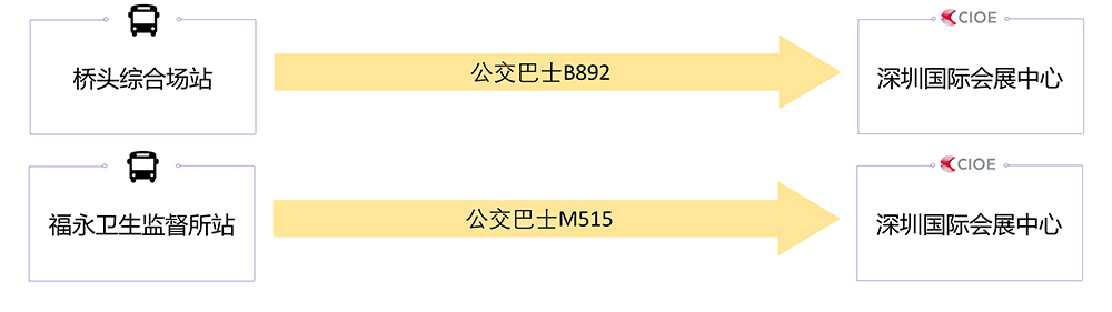 香港国际机场:搭乘公共交通,如跨境巴士、轮渡等抵达深圳后,再转乘公共交通至展馆