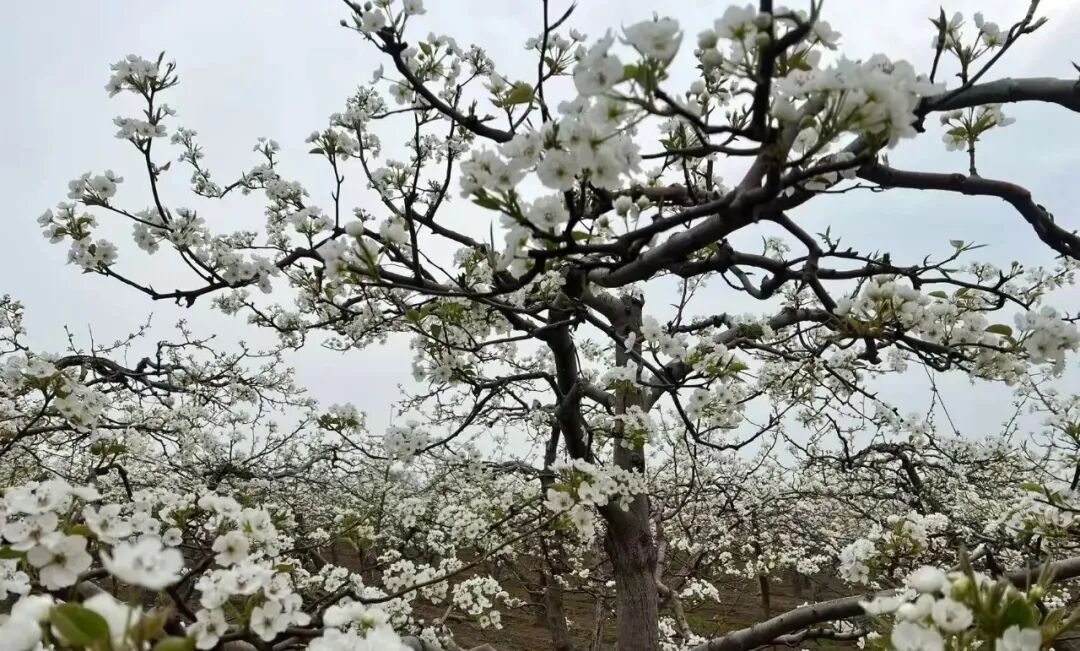 梨云卷雪千层浪,玉蝶栖枝一树霜,风扶素影溢东墙。香透嗓,哼个老秦腔。