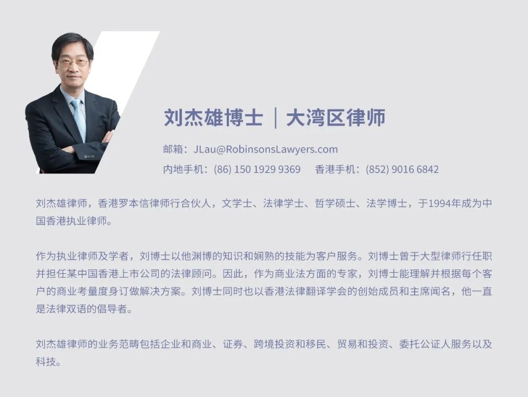刘杰雄律师,作为青狮云岸律师事务所与香港罗本信律师行的执业律师,履历贯穿香港中文大学文学、哲学、金融多领域学位,叠加澳洲悉尼大学法律学士、中国政法大学法学博士的专业深耕,多元学科思维交融使其在科技法律、知识产权、金融法律等跨领域出海业务中,在精准适配不同法域的合规要求的同时,洞察商业逻辑与行业规律。