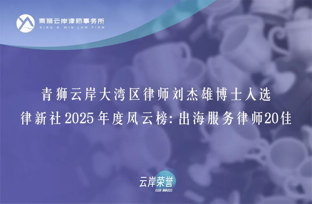经申报审核、专家评审、同行调研及客户满意度调查等多维度评估,律新社2025年度风云榜:出海服务律师20佳”于12月16日正式发布。青狮云岸大湾区律师刘杰雄博士凭借丰硕的业务成果与卓著的客户口碑入选榜单,同时印证了云岸在大湾区提供高端法律服务的专业实力。