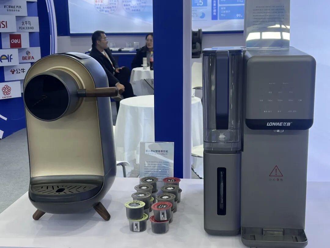 从生活用品到智能家电,从精密配件到整车设计,宁波展品清晰地传递出“设计宁波”的核心内涵:以持续的科技和设计创新为引擎,以深厚的文化底蕴为滋养,以绿色可持续为导向,最终服务于人的美好生活与个性化表达。大业精点设计的米家胶囊咖啡机S1兼顾人性化与设计美学,精巧的设计和小巧的机身使其能够适用于各种居家环境或办公场景。方向工业设计带来的茶小度AI智能茶饮机是一款采用一系列高新技术解决中国人喝茶问题的产品。复古实木把手设计,手摇方式出茶,出茶更加方便快捷。内置智能AI语音控制系统,实现智能语音控制和语音联想。沃吉工业设计的“V-001男士理容四件套”以统一设计语言构建套系认同感,通过材质对比与交互引导,让科技工具成为感官体验的延伸。