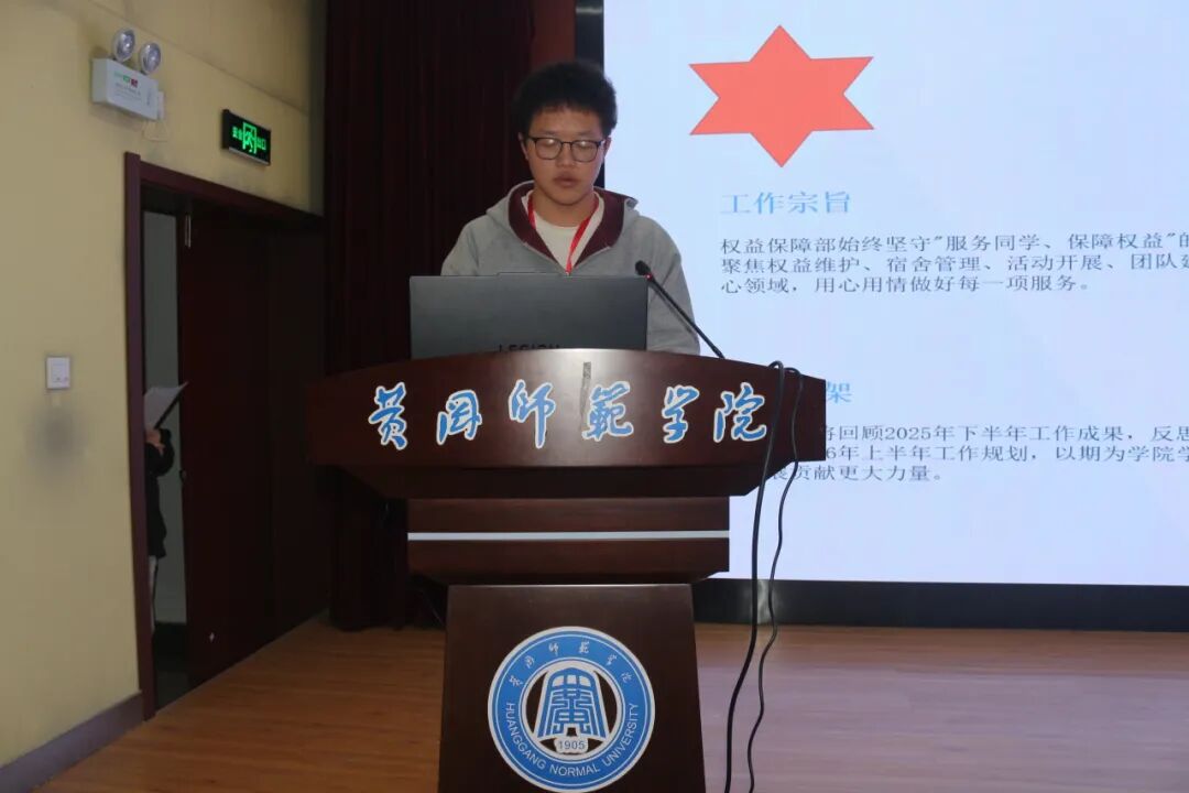 随后,团委学生会下设十个部门负责人依次进行工作汇报。各部门围绕团务基础建设、新闻宣传创作、文体赛事组织、权益服务保障等核心职能,用数据晒成绩,用案例谈经验,既展示了扎实的工作实绩,也毫不避讳地剖析了自身不足。通过交流研讨,各部门进一步理清了新学期的工作思路,明确了发力方向。