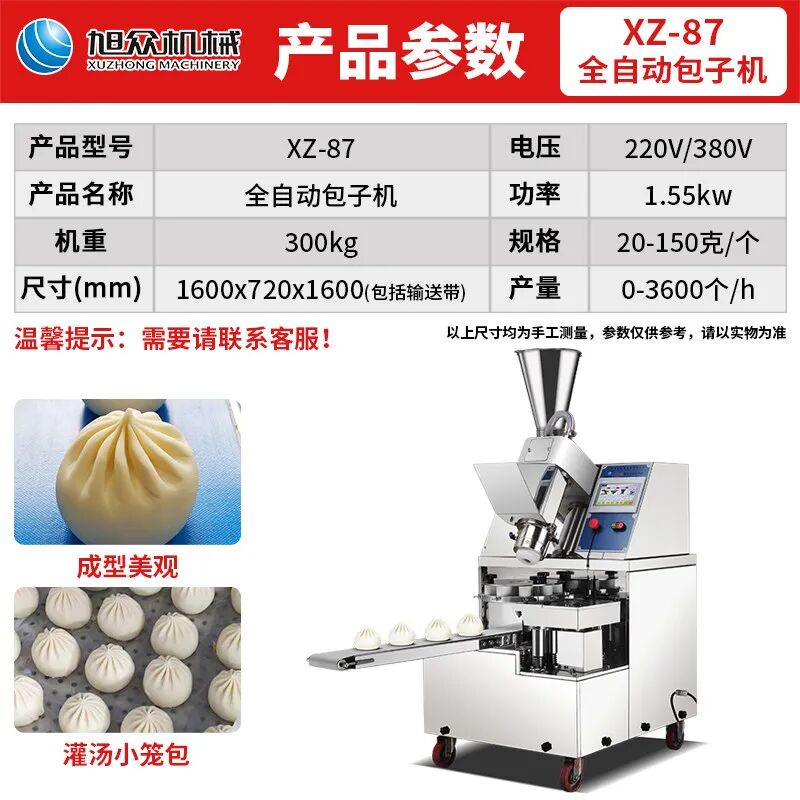 2026 早餐创业风口、广交会海外订单旺季,选对设备 = 少走弯路、多接单!广州旭众包子机(XZ-960 / XZ-87 / XZ-290IIA),不夸大、只讲真实参数与实用功能,小成本起步、稳定高效、出口合规,适合早餐店、摆摊、家庭作坊、外贸出口,帮你轻松做包子、稳出单、拓市场。电压 / 功率:220V/380V 双电压,3kW尺寸 / 重量:1260×1200×1430mm,约200kg尺寸 / 重量:1600×720×1600mm,约250kg 尺寸 / 重量:2080×1500×1420mm,约400kg 特点:卷面成型、不伤面筋、口感更接近手工、适合高端订单 + 出口 注:实际产量随面团硬度、馅料干湿、操作熟练度略有浮动,属正常范围。双绞龙 / 卷面式低速送面,不破坏面筋,面皮有韧性、口感松软立式 / 半卧式出馅,馅料填充均匀、不漏底、不破皮 适配发面、死面、烫面、老面、灌汤面皮等多种面团按钮 / 触摸屏控制面板,调节大小、皮馅比例、速度,直观易懂 机身及食品接触部位304 不锈钢,防锈、无异味、易清洁 符合国内食品卫生标准 + CE 出口认证 核心电机 / 部件耐用,支持长时间连续作业,故障率低 可做:小笼包、生煎包、灌汤包、肉包、菜包、豆沙包、水晶包、奶黄包、圆馒头等 5. 节能低耗、运行稳定 功率1.5-3kW,省电不费电,长期运营成本低 机身稳固减震,噪音低、连续工作不发烫 占地适中,门店、作坊、移动摆摊、中央厨房都能放 6. 出口适配 + 全国联保,售后有保障 双电压(220V/380V),适配全球不同国家电压CE 认证、木箱包装、跨境发货,广交会 / 外贸订单无忧 厂家直营、全国联保、上门安装、免费培训,售后响应快社区早餐店:替代手工,1 小时顶 3-4 人,应对早高峰、稳定出餐 流动摆摊 / 小吃车:占地小、易移动、产能足,街边 / 集市 / 校门口灵活经营家庭小作坊:低成本起步,批量生产批发、配送,不用雇人、轻松创业 海外餐饮采购商:符合国际标准、操作简单、适配多品类,适合海外早餐店、华人餐厅 跨境贸易商:双电压、CE 认证、耐用稳定,适合东南亚、中东、欧美等市场 海外创业 / 华人餐饮:体积适中、运输方便、一机多用,海外开店更省心单位 / 学校 / 工厂食堂:批量供餐、干净卫生、省人工 速冻食品加工厂:标准化生产、大小统一,适合速冻包子批量加工 食材配送 / 中央厨房:统一出品、高效稳定,为门店、商超批量供货 2026 春季创业、广交会接单,选旭众 XZ-960 / XZ-87 / XZ-290IIA包子机,没有夸大宣传,只有扎实性能:3600 个 / 小时稳产能、仿手工成型、操作简单、食品级不锈钢、一机多用、出口适配、售后联保,完美覆盖早餐店、摆摊、家庭作坊、外贸出口全场景。 不管你是小本创业起步,还是拓展海外订单,它都能帮你省人工、降成本、稳品质、提效率,让包子生意更轻松、更赚钱!免费获取详细参数表 + 出口认证资料 + 多品类工艺配方广交会专属优惠:出口订单享包装、物流、售后一站式服务 宋经理: 18922291441