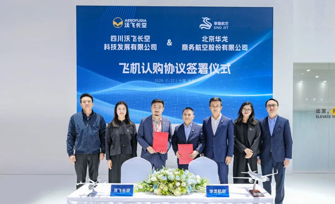 协议由华龙航空高级副总裁孙建锋与沃飞长空CEO郭亮代表双方完成。此前,双方已签署100架意向采购并联合启动成都FBO,此次订单将用于机场快线、城际穿梭、景区文旅等场景,同步建设城市核心区起降点,打通高端出行最后一公里。