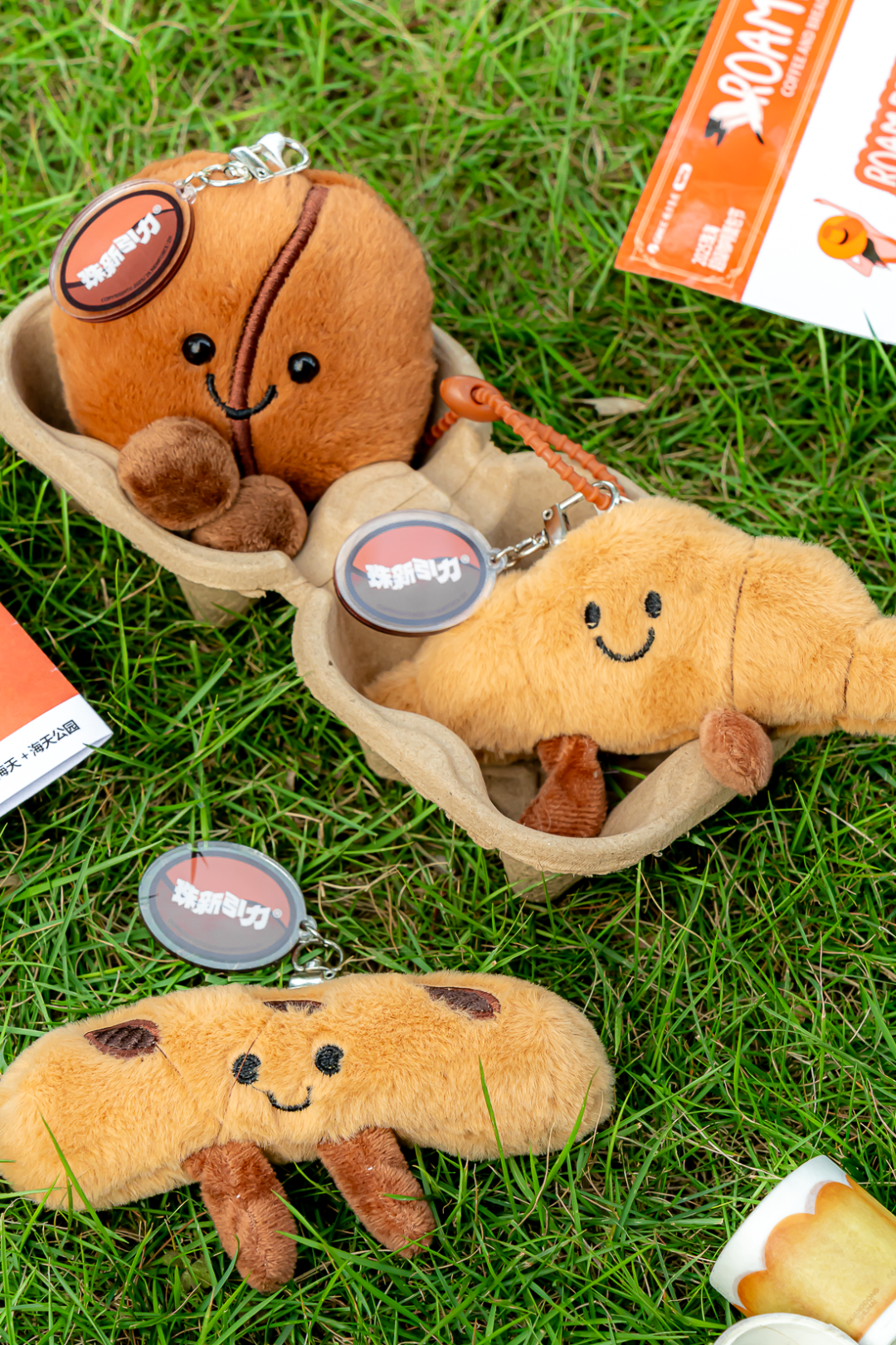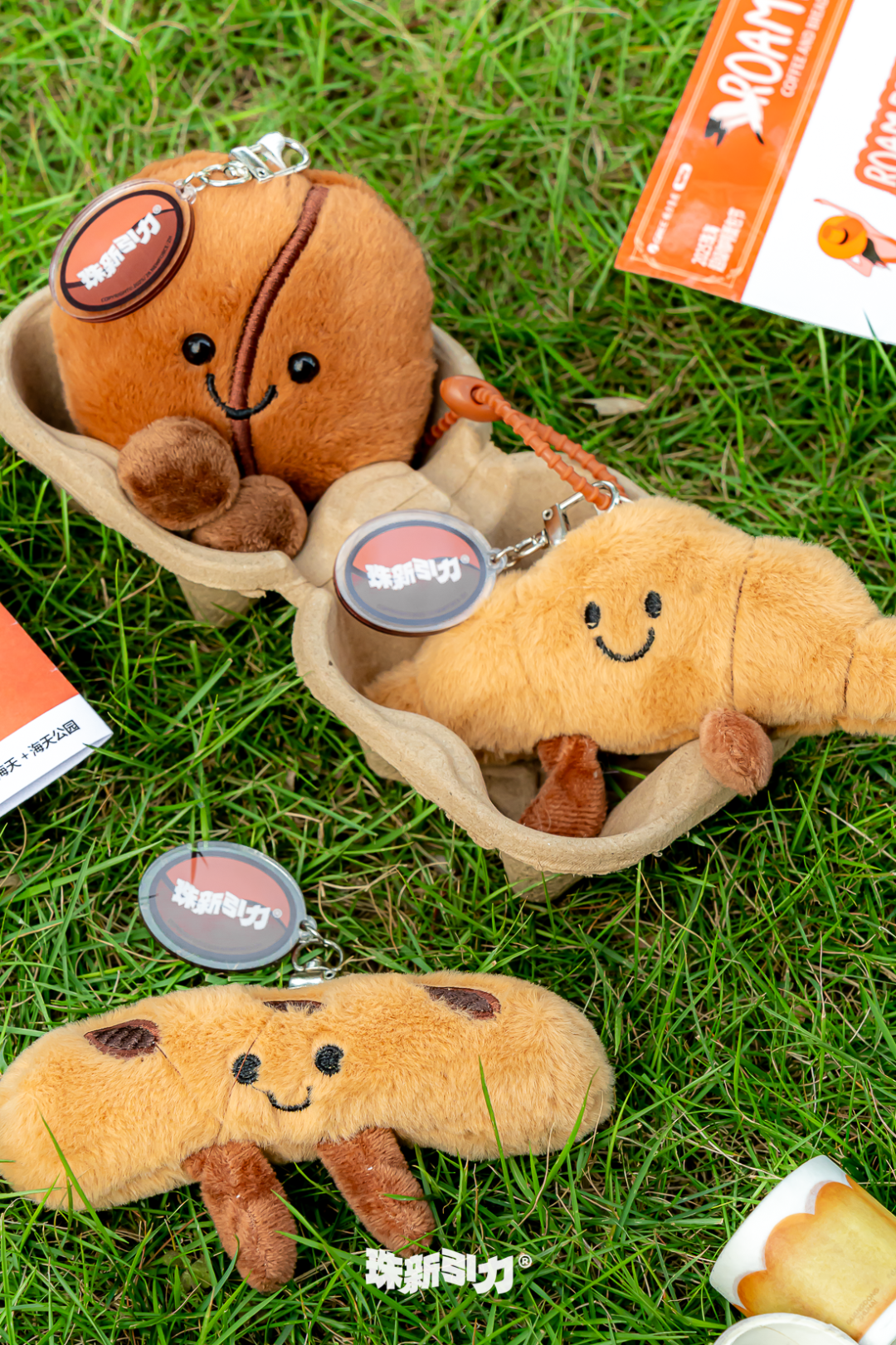 本届周边,我们延续质感与趣味,jellycat风格的「咖啡&面包毛绒公仔」,以柔软质地传递触觉的慰藉;「限定编织袋」与「牛角包」,将日常物件变为记忆的容器。