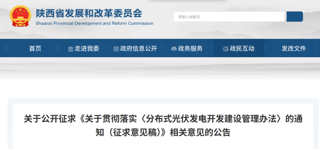 9月26日,陕西省发改委发布《关于贯彻落实〈分布式光伏发电开发建设管理办法〉的通知(征求意见稿)》。