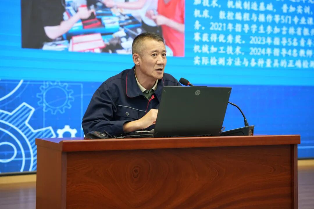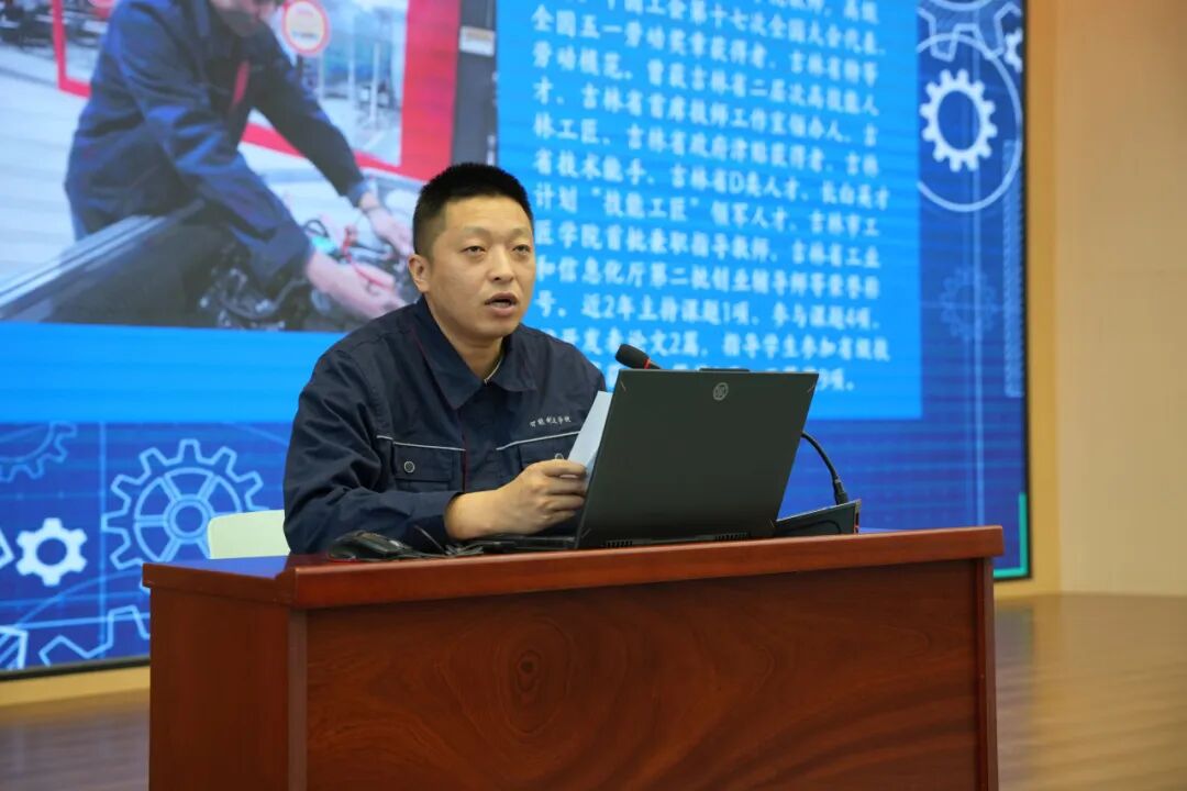 吉林省长白山技能名师、吉林省首席技师、吉林市五一劳动奖章获得者孙文刚老师,以“热爱、坚持”“实践、专注”“奋斗、拼搏”“传承、创新”“担当、奉献”五个关键词,串联起自己的职业成长历程。他叮嘱学子,技能成长从无捷径,唯有脚踏实地、稳扎稳打,才能在平凡岗位创造不凡业绩,实现人生价值。