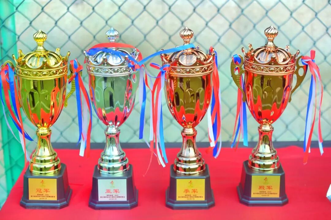 重磅团体冠军奖,由陈海贤、冷建军、岑波、林志华、河北掌灯企业管理有限责任公司董事长白建立给获得冠军的双虾标风湿油足球队颁发奖杯、奖牌和奖品。