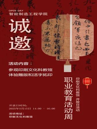活动内容:诚邀大家参观印刷文化科教馆,体验雕版和活字拓印。在油墨与纸张的交融间,触摸印刷文化的历史脉络,见证传统技艺在现代的创新传承。