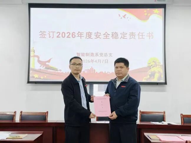 会后,系部教职工签订了《智能制造系2026年度安全稳定目标管理责任书》和《智能制造系2026年度消防安全管理责任书》。