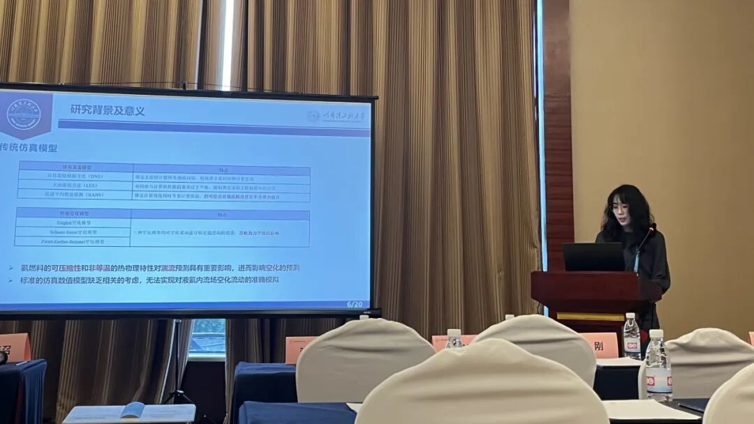 硕士研究生宫菀孺以《共轨喷油器喷嘴内氨燃料空化特性仿真研究》为题介绍了基于热敏流体燃料液氨的仿真模型修正方法,并对液氨和柴油在喷孔内空化发展的差异性进行对比分析,为液氨在发动机上的应用提供了研究基础。