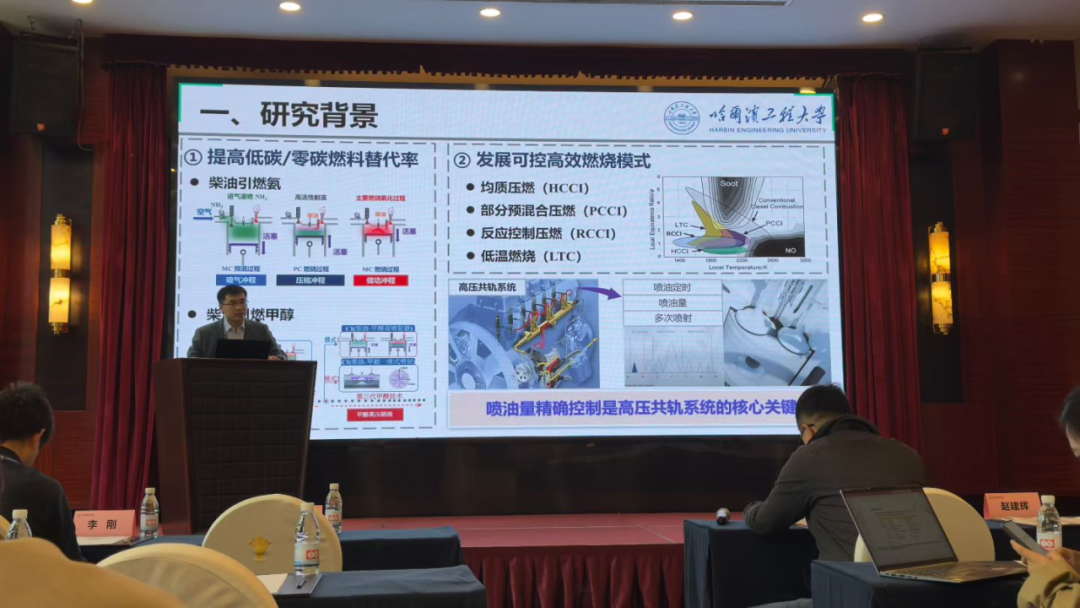 赵建辉教授作为特邀专家进行分会场报告,以《高压共轨系统喷油特性在线可信感知研究》为题介绍了高压共轨系统喷油特性实时感知技术及其试验验证,开发了QPSO-DL-BiLSTM喷射特性感知模型(R²=0.99),通过瞬态喷油特性高精度实时感知与精确闭环控制,实现IMEP波动率小于1%。