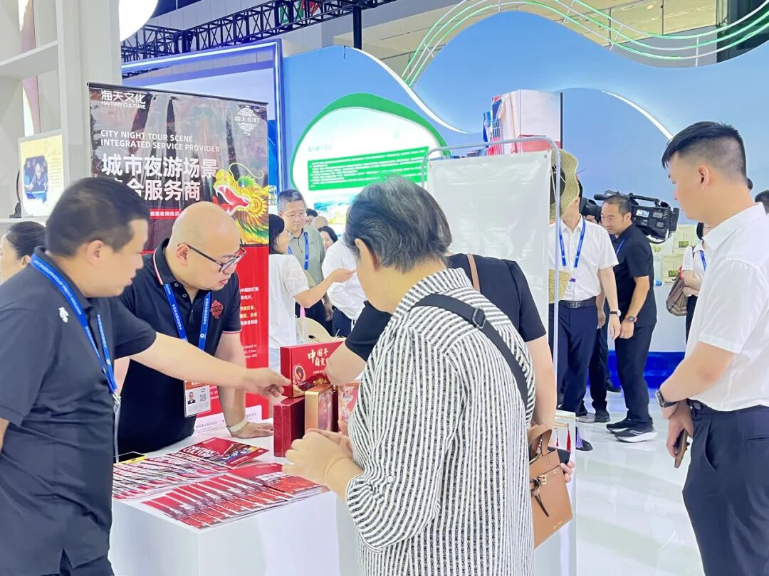 除沉浸式文创体验外,海天文化还通过图文展板、数字影像等形式,系统呈现了城市夜游规划、节庆灯会打造、文化出海实践、灯彩文创开发领域的标杆成果,来自文旅、会展、城市规划等领域的从业者及合作伙伴纷纷驻足交流。