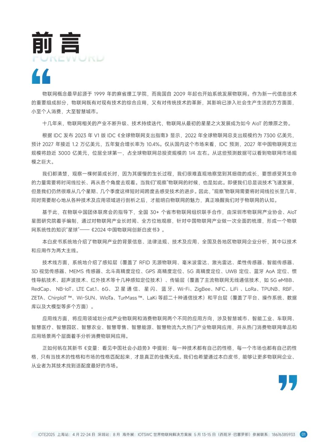 基于此,在物联中国团体联席会的指导下,全国 30+个省市物联网组织联手合作,由深圳市物联网产业协会、AIOT星图研究院着手编制,通过对物联网产业长时间、全方位地观赛,针对中国物联网产业做一次全面的梳理,形成一个物联网系统性的知识"星球”--《2024 中国物联网创新白皮书》。