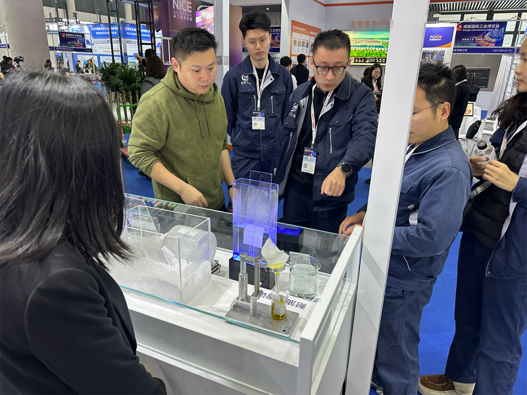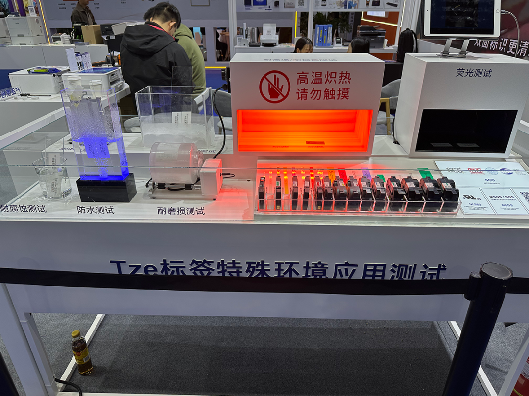 这两天,我们也把验证TZe标签具备防水、防油、耐腐蚀特性的实验搬到了此次工博会的现场,即便是在机加工切削液浸润或化学试剂沾染的环境下,字迹依然清晰。